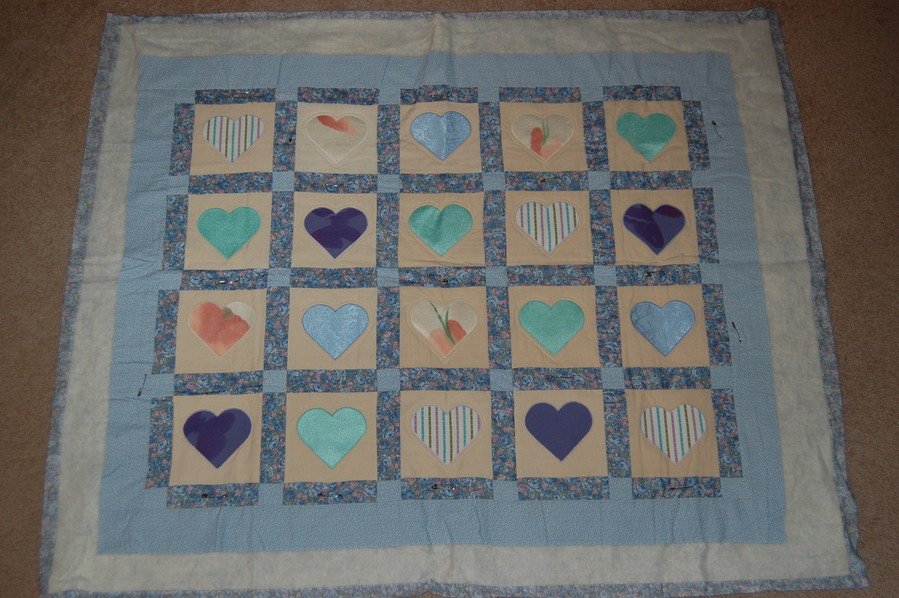 Taylorck2 Memories of Margaret - I'm sorry but I don't remember the exact name of this quilt block or where I got it. I made it after my aunt passed away. All hearts are made from her old dresses. As always, I became frustrated when trying to quilt it so it is still unfinished. My goal is to complete it in 2008 and give it to her daughter when done.