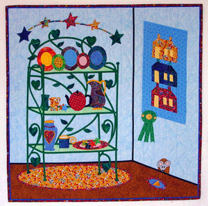 KayMac C'est le Fromage - I made this as part of a challenge with quilters in France. We used 6 fabrics chosen by the Americans and 6 fabrics chosen by the French. This was the first quilt I designed on the computer! My husband helped me with getting true perspective.
