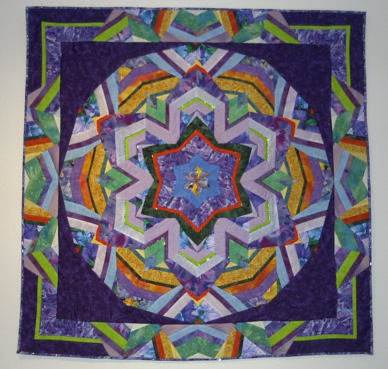 leequilter Kaleidoscope - Ricky Tims taught a class in Durango, Colorado on the Kaleidoscope quilt. This quilt is a result of that class plus an extensive amount of beading.
