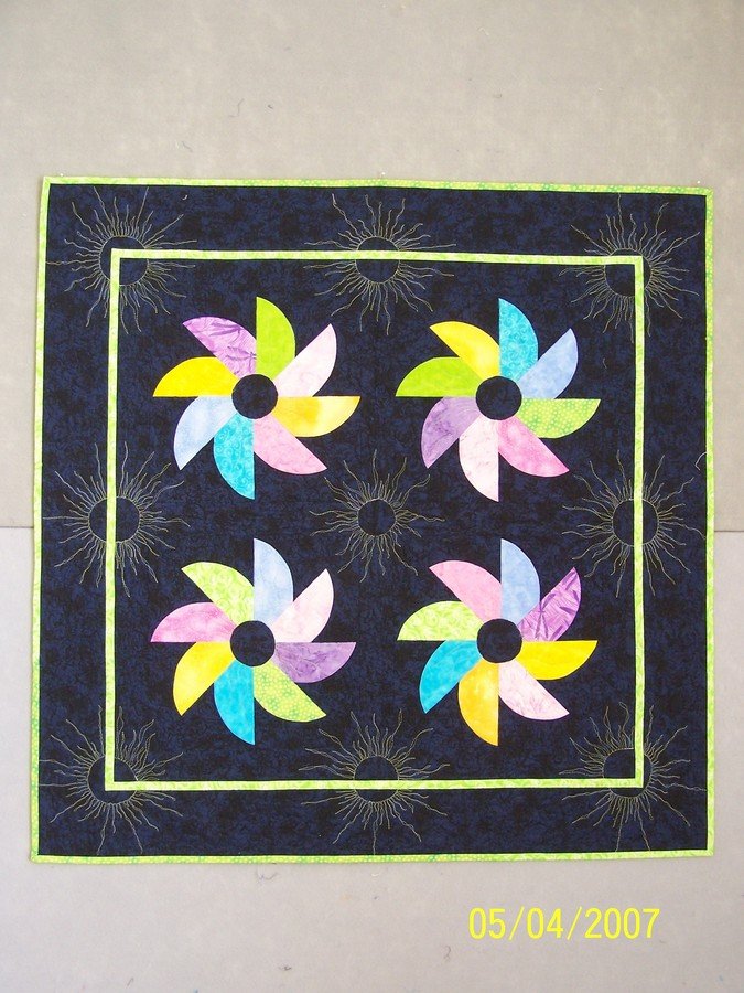 QuiltBabe Flowering Pinwheels - This quilt was quilted while taking a seminar from Kathy Sandbach at Asilomar in 2004.