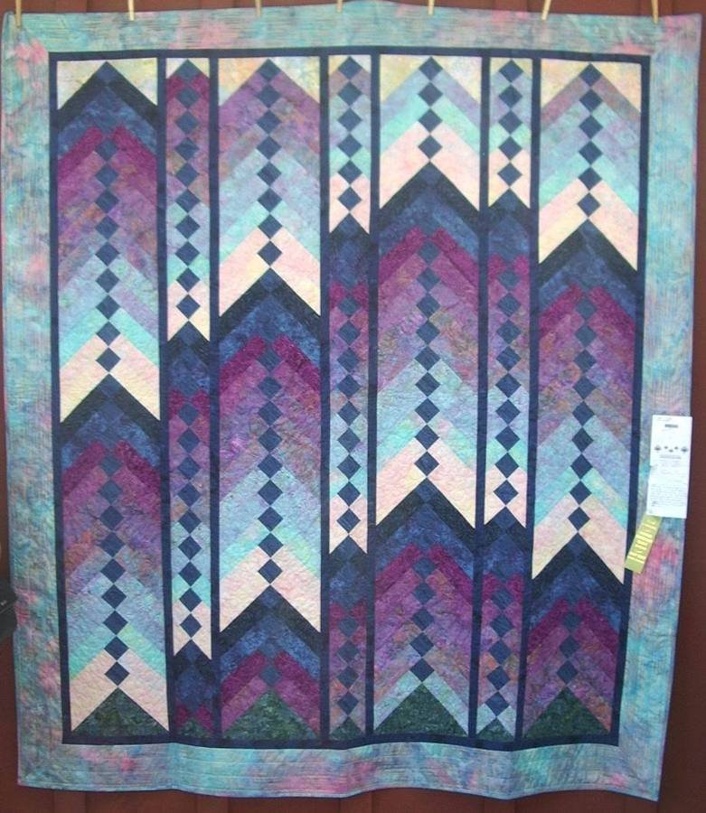 quiltbus Mountains at Sunrise - From my stash of batiks I was able to pull most of the fabrics for this quilt. It was fun to play with the color range. This was displayed at Sister's Quilt Show 2007