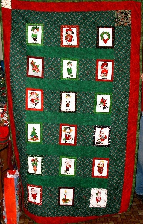 | Design Source - Description | This panel of Christmas ladies made up into a cute lap quilt. I believe this was a Moda fabric. |