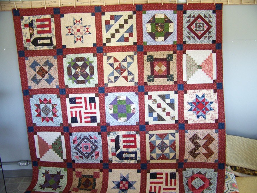 mtcreekquilters War is hell on the homefront too! - This was a Block of the Month, its a good thing too, looking back, I don't know that I would have made it, the pattern didn't have rotary cutting, it was templates and I was so new to quilting that I didn't have a clue as to what to do with them, but it is finished and square, yeah...
