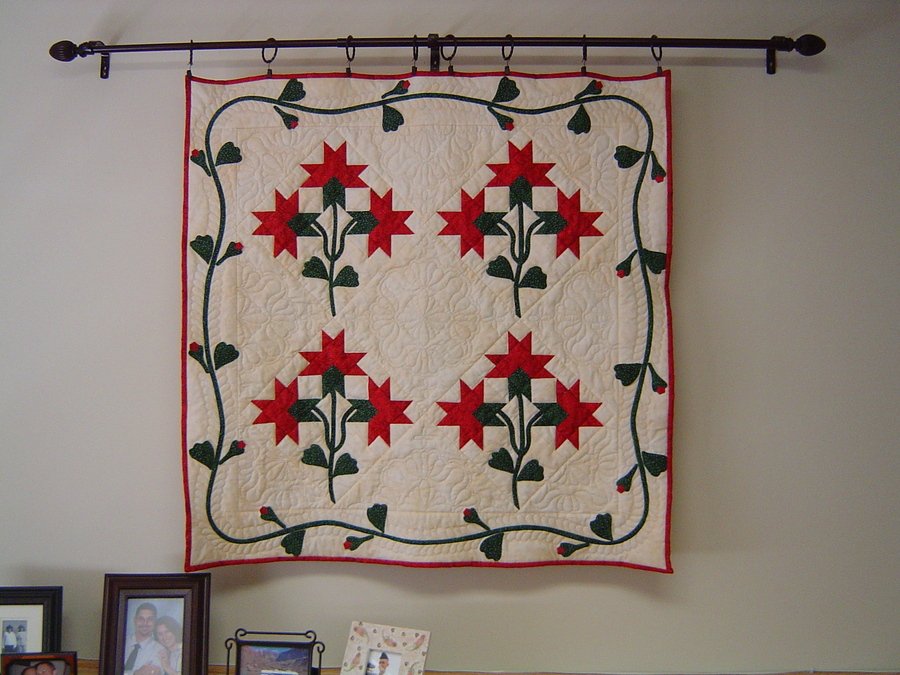 cindalee Peonys - This quilt was made to hang in my office. I needed one that was the right size for the space I had, and one that I could finish quickly. I really like the clear instructions Elenor provides and it also was a big help that her Egg Money Quilt series was being shown at the same time.