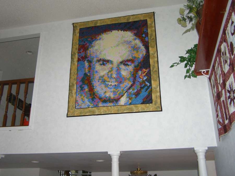 Quilt is made up of 4960 1 inch squares. Had many conversations with him while making this quilt. |