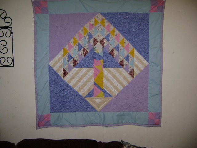 mandysilk A Life Full of Diversity - This quilt was made as a way to use up a lot of scraps I had laying around and using a technique of sewing scraps together and cutting the templet peices out from the "created" fabric. As I was making it I thought of Morgan Freeman's line in Robin Hood when the little girl asks why he is "painted" - his response was "Because God loves life full of wonderous diversity." My first try at freemotion quilting.
