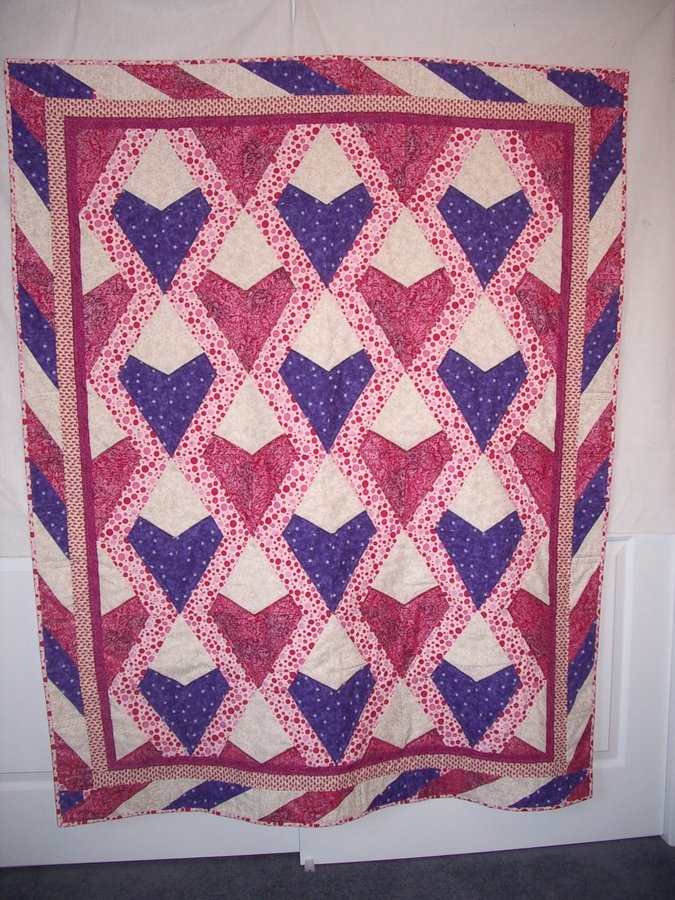 Katiezquiltz Magical Musical Hearts - I had just returned from road2ca where I bought this pattern. When my friend Toni Ruby was diagnosed with cancer I knew I had to make this quilt for her. Within 3 months she was gone and I then knew it had to go to her daughter Kylou.