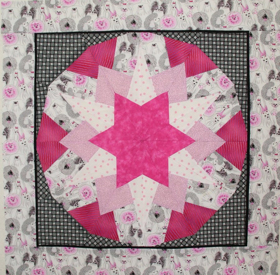 RitaBlocksom Pinkers - This is a class sample for Ricky's Kool Kaleidoscope class which I have his permission to teach. In this sample, I have used only five fabrics instead of the usual strata of multiple fabrics and colors.