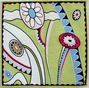 Bakewell "They came from outer Space" - A small square wallhanging submitted as part of a Cabot Quilting Conference challenge called Flower Power.