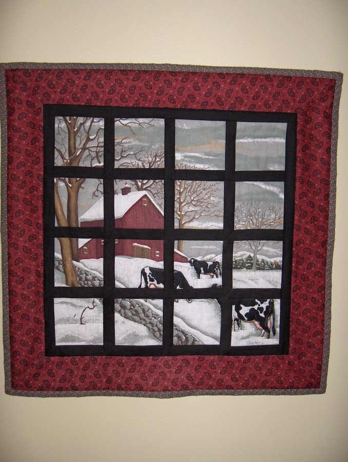 | Design Source - Description | attic window quilt using a purchased pillow panel - quilt was made to remind me of the cold WI winters |