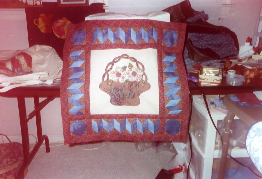 PattiSure round robin - My first participation in a round robin. Sue did the basket in the middle and I did this first border. It was then passed on 2 more times. The guild hadn't done a round robin before so when they saw the 4 tops that came out so well it generated alot of excitement to do more of them. I will post my top when I get the pic developed some day!