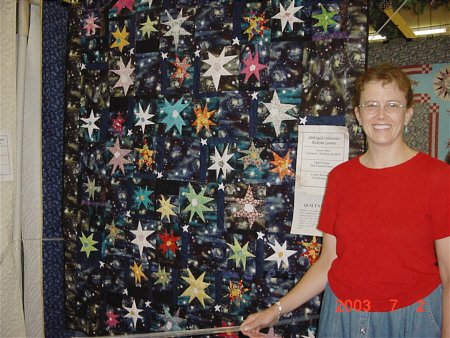 | Design Source - Description | Using scraps of vintage and other fabrics in my stash, and yardage of a space fabric for the background, I made this for myself and take it camping every summer, sleeping under the "starz". |
