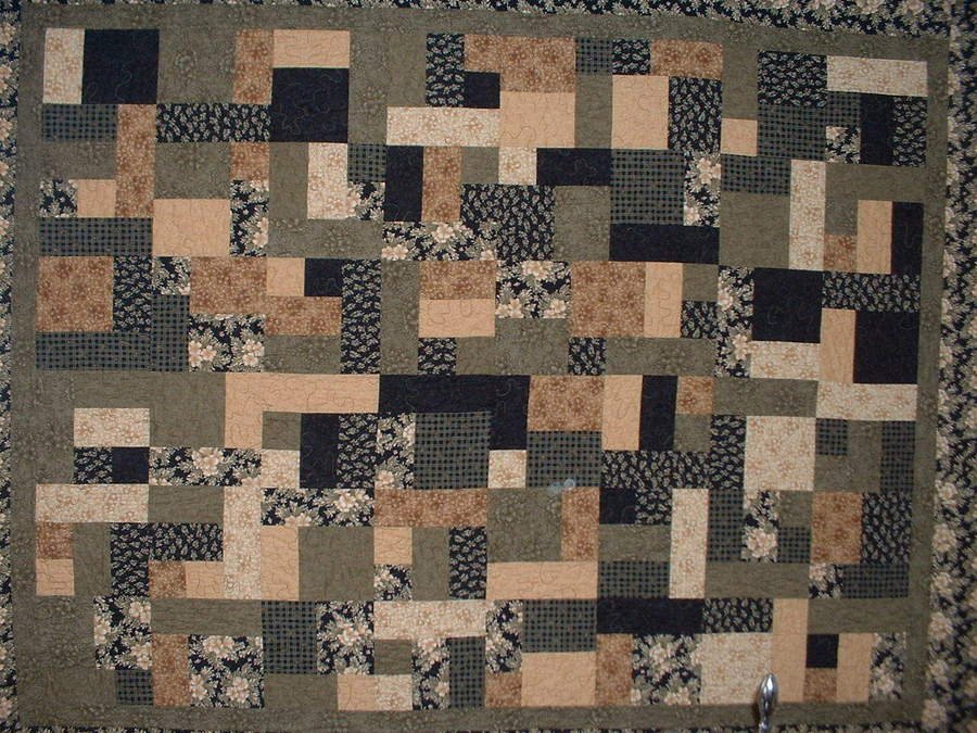 nannae05 Brown, black and white but pretty. - I just fell in love with the fabric. One of my quilt shops, "Gotta Have It Quilt Shop" in Baldwyn Ms. had one made up. So I bought the last kit and had a lot of fun making it. Even though the colors are muted and somewhat on the dull side, I thought the white flowers really perked it up. It is a very pretty quilt. I machine pieced it on a Bernian 1250 and free motioned quilted it on a long arm machine. I did a meandering large stippling type quilting on it. This block and type quilting lets the fabric show up. Which is what I like best about quilting, the fabrics!!! Hope you enjoy looking at my quilts.
