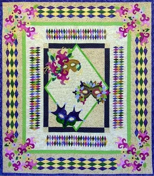 peckspieces Masquerade - This quilt was designed and made by Marjory Peck and Hannah Stein to be used by the Arizonia Quilters Guild for they're 2005 opportunity quilt. Marjory designed and sewed the applique, Hannah pieced the entire top. It made almost $5000 for the guild.