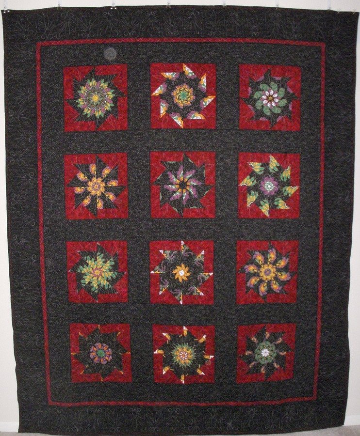 | Design Source - Description | My first Stack and Whack quilt, using Mardi Gras novelty fabric. I used Ricky's piped binding technique for the binding. WooHoo! I like that! Thanks Ricky. |