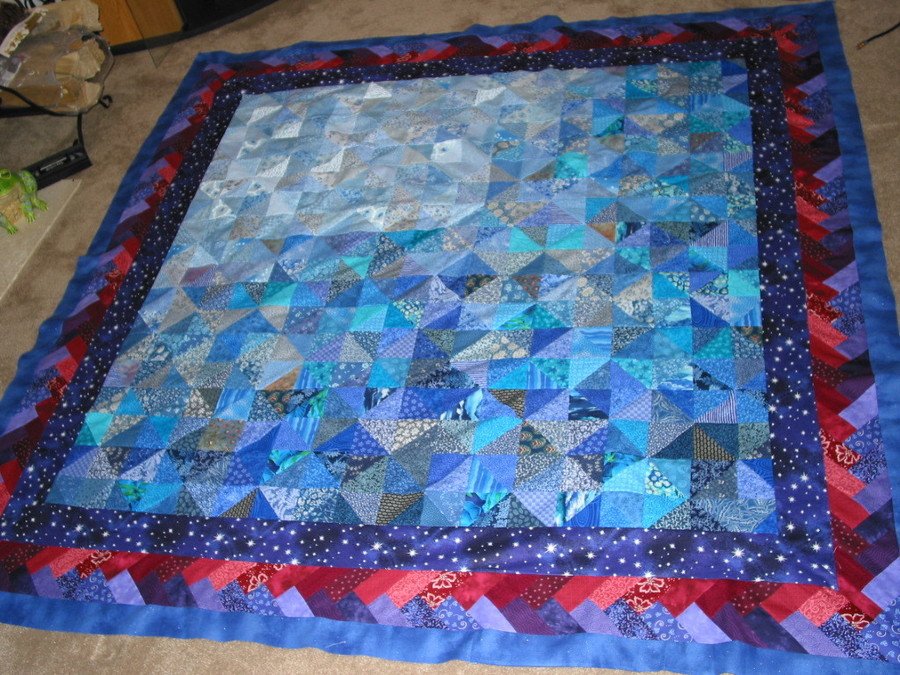 jprich On the horizon - I originally made this as a background for some applique work- however- when I laid it out to decide on placement of the applique pieces....I couldnt bring myself to cover any of it! It was lovely just as it is!