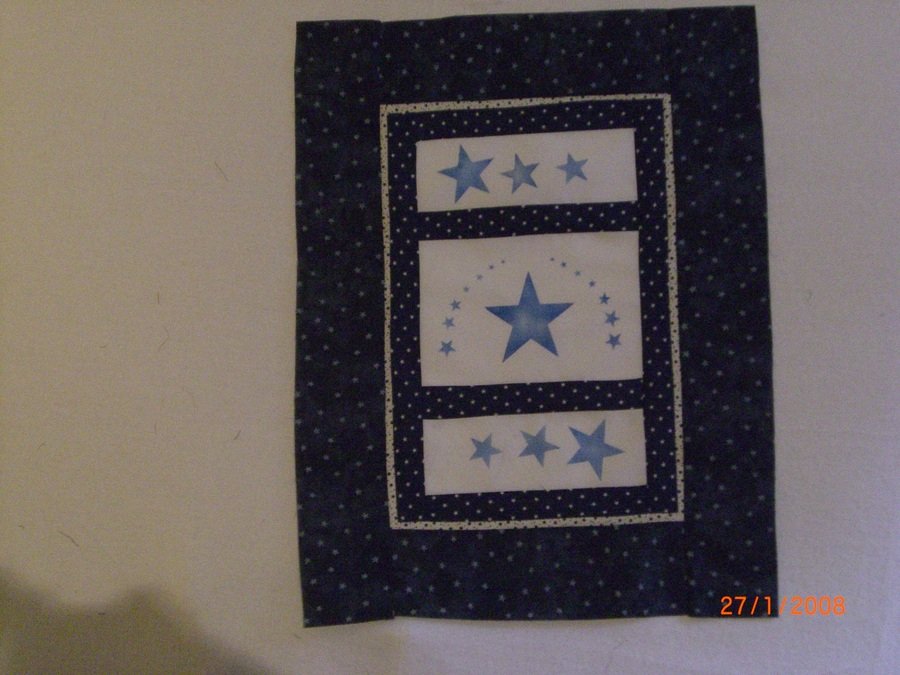 | Design Source - Description | This is a work in progress. I painted the stars and found I had some star fabric here, so started putting it together. I need to quilt it and bind it. Maybe this will be my VIP next weekend. |