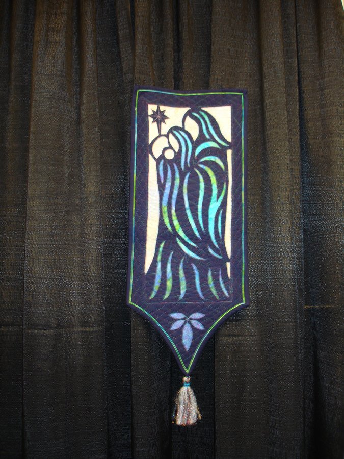 pamo65 The Holy Family 2007 - It is heavily quilted with Superior's Rainbow. I added the piped binding to showcase the bacground fabric. The tassel is handmade with Ricky's Razzle Dazzle by Superior.