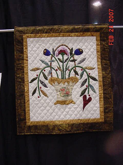 Chopin Folk Art Flower Basket - Needleturn Applique is my first love of quilting. I learned how to needle turn applique using Elly Sienkiewicz's Baltimore Album Books. This pattern came from a workshop that I took with Robyn Pandolph.