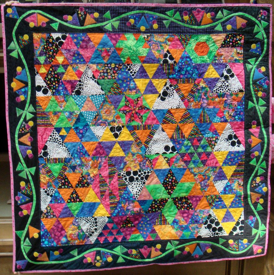 Lorna1021 Miranda's Whimsical Triangles - I enjoyed this class by JoAnn Belling in early 2007. It was a fun quilt to make for my new granddaughter. I used brights from my stash with a few extra fabrics to round it out.