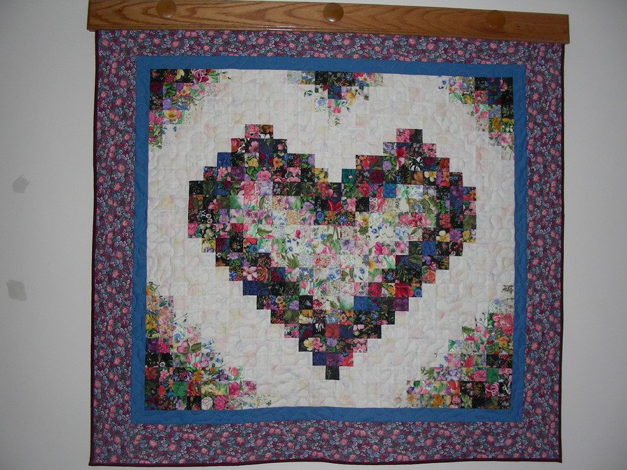 FayIlene Watercolor Heart - I had never attended a quilt class before, and was interested in the process of watercolor designs. Our local quilt shop, Furever Friends, gave the perfect class for me. I enjoyed the process and I get many compliments on this quilt.