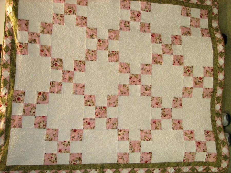 | Design Source - Description | Shabby Chic colors made this Single Irish Chain quilt. It is the first quilt that I have made specifically for me!!! It will be my quilt to nap under, read under, dream under. |