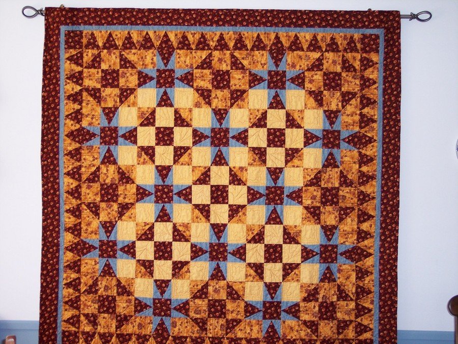 cbear Spice - Our quilt guild was challenged to make a quilt using two quilt blocks, used any way they wished. I used the Shoo Fly block and the Eight Pointed Star block with color placement to come up with this design. I loved planning out the color placements and deciding just what the fabrics and colors would be. What I ended up with is nowhere near what I had in mind when I started out.