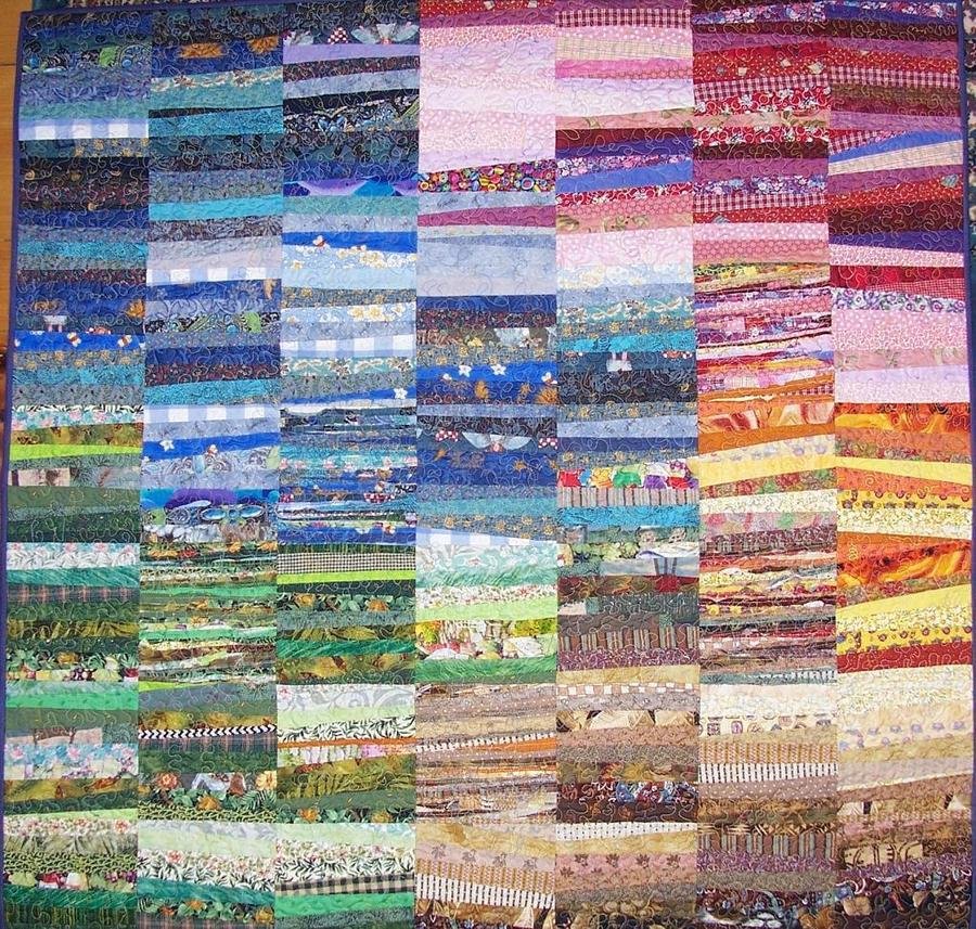 AliQuilts From My Window - The view from my studio window looks out over the Main Range National Park in south-east Queensland, Australia. In autumn the sun casts an orange glow in the afternoons over chocolate paddocks and farmland. We have electric blue skies infused with the amber and oranges of a long, slow sunset. It is always uplifting, and inspired this wallquilt.