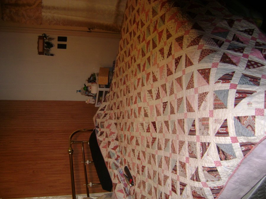 PennyBowser Chocolate Strawberries - This is a quilt dated from approximately 1890. I bought this quilt and it has some material deteroriation in some of the brown patches. I love this quilt and want to attempt to restore some of the patches but have not yet been successful in recreating this fabric to my satisfaction. I love the pink fabrics in this quilt there are some really cool double pinks.