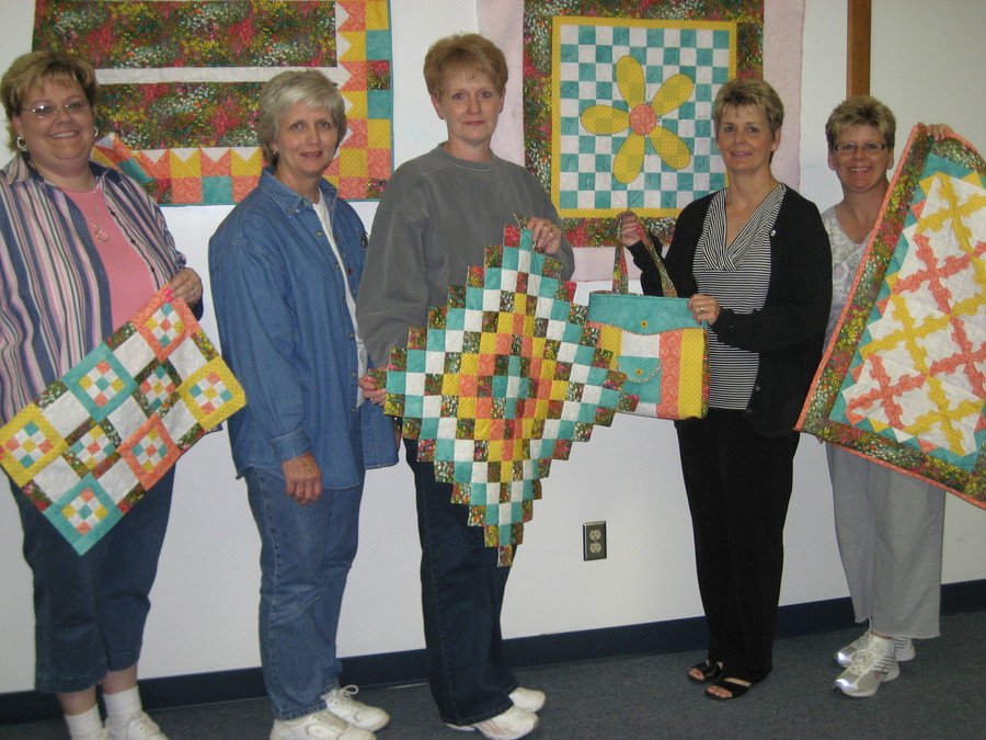 Vonna Various Projects - This was our church group's Spring Mystery Challenge. Each person was given fat quarters alike and were to quilt a project using only the fabric provided. The backing could be purchased.