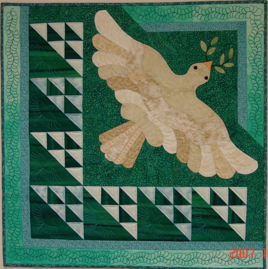 savagequilter Birds in the Air: The Dove of Peace - This quilt was made for a local quilt shop (Quilted Threads in Henniker, NH) challenge. The fabrics in the bird were the challenge fabrics, and the name of the challenge was "Peace by Piece".