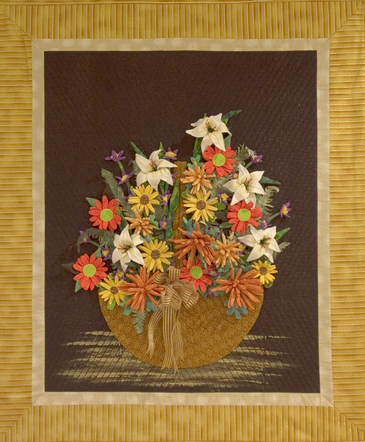 | Design Source - Description | Two main construction techniques are used to make all the dimensional flowers that fill this woven basket. The background is completly finished before any flowers are attached. www.2BarA.com |