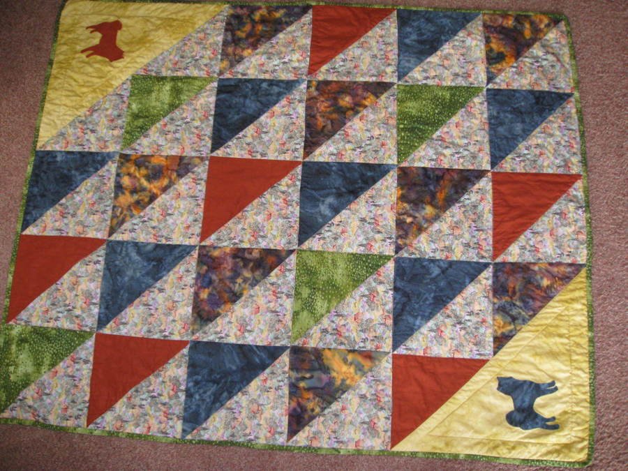 | Name of Pattern or Block | Triangles + machine appliqued Shibas |