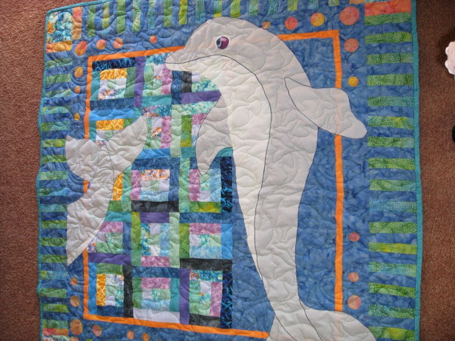 laynak Let's Go Swim - My friends adopted twin baby boys! Their babies' room is a 'Finding Elmo' theme so this quilt design seemed fitting for some years to come.