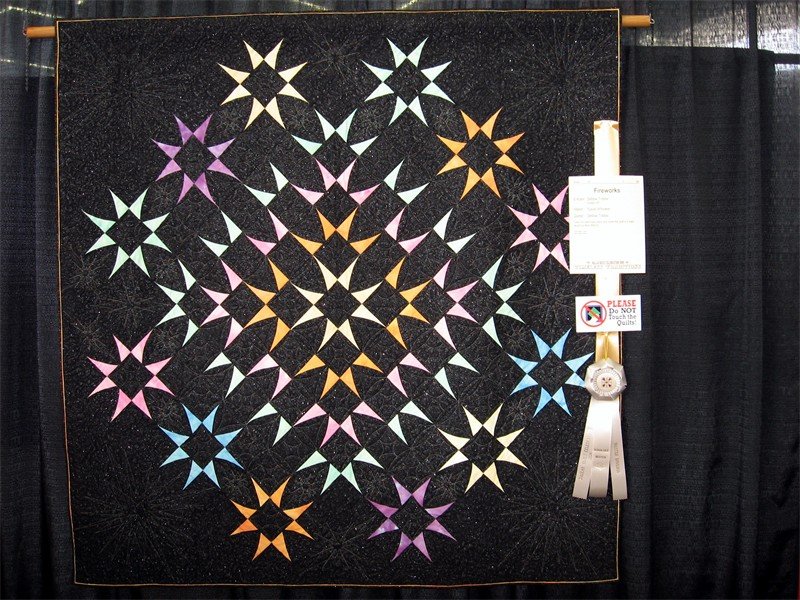 whitsusa Fireworks - Made quilt in class taught by Alice Wilhoit. Used my hand dyed fabrics and black Fairy Frost.