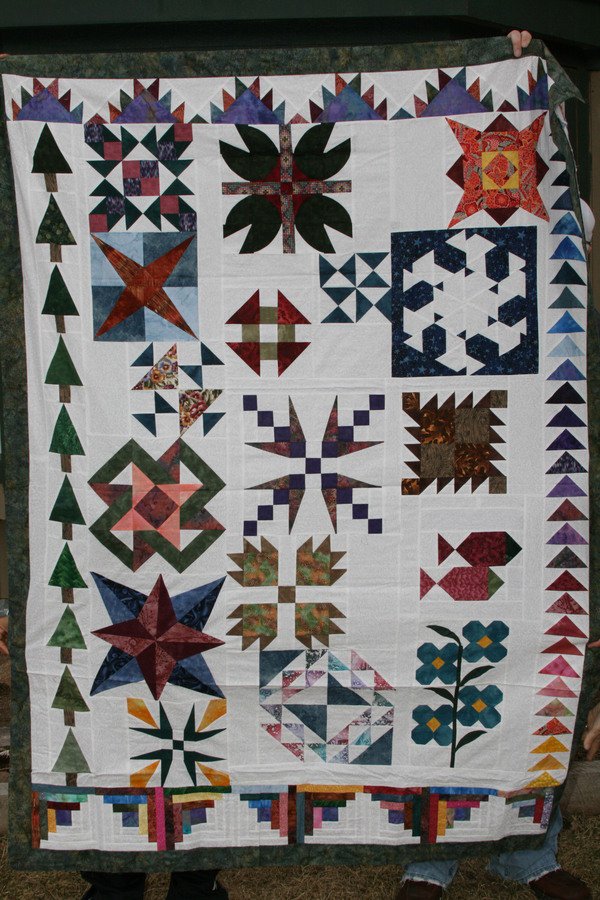 sewengel Alaska on my Mind - My husband and I took a cruise to Alaska in 2002 for our 30th anniversary. Of course, I found quilt shops in almost each town and at Skagway there were 2 shops! He bought me a wonderful amount of hand dyed fabrics along with the pattern for this quilt. It is a wonderful memory of our cruise. It was a lot of fun.