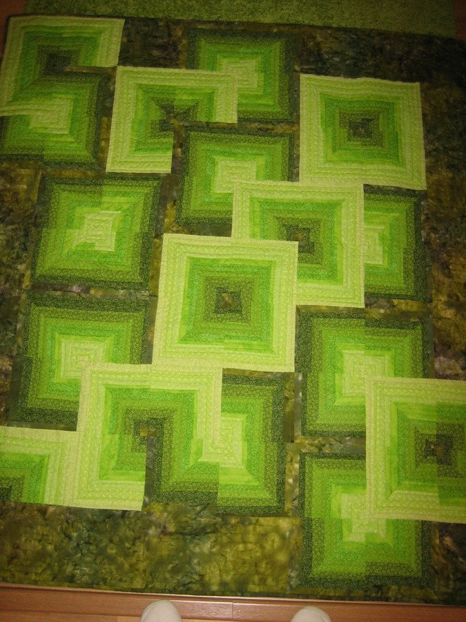 iraida Kinetic Energy quilt - This bright-green quilt is my first full-size quilt for my lovely son Sergei. After finishing his room he needed some piece of art on the walls.