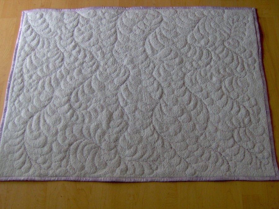 Bath Rug made from two "Old" worn, faded Bath Towels. No Batting needed. LongArm Quilted, trimmed and bound! Now Who Couldn't Use Another Bath Rug? |