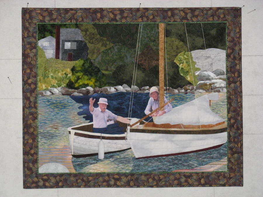 delupine1 Two Birds of Happiness - I made this memorial quilt based on a 3x5 photo that someone had taken of my parents on their boats. My dad passed away May 2007, and my mom in 2005.