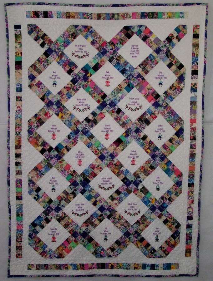 Franceslovesfabric One Hundred Years of Marriage - In 1999, we added up the years my parents and siblings and myself had been married and it was 100. Lovely occasion for a family reunion. My first large quilt.