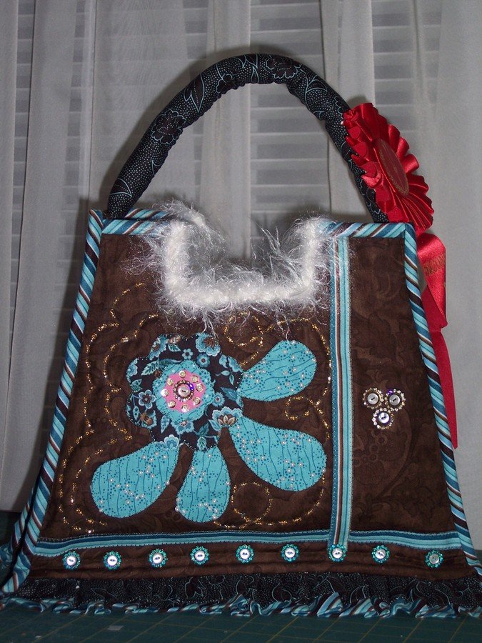 denise-nh Challenge Puse - Guild Challenge - It's in the bag. Lots of beautiful bags and unusual. This bag was always a problem for me. 1 step forward and 2 or 3 back. It was a learning process of what not to do. By the end, I was so tired of the purse I was just happy to have it done. Then it won 2nd place in our Guild quilt show. I guess it's looking better now.