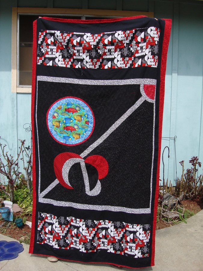 | Design Source - Description | My son had requested a black quilt with some red and white. This is the first time I used a sew in the round type effect. |