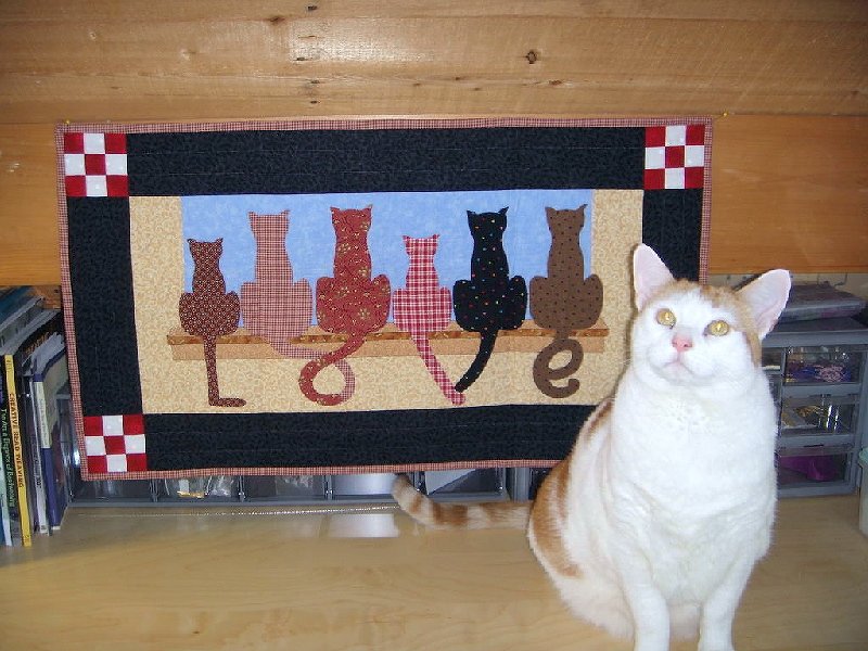 DonnaC4 Kitty Love - I saw this pattern on "Angie's Bits & Pieces," I became a member of her wonderful website (ajpadilla.com) for this pattern alone. I love it! Made for my girlfriend Judy, we do a monthly swap of a handmade, stitched or embroidered project, this was my Valentine swap mailed to her Jan 25, 2008. That's her kitty, Klink, posing in the picture :)