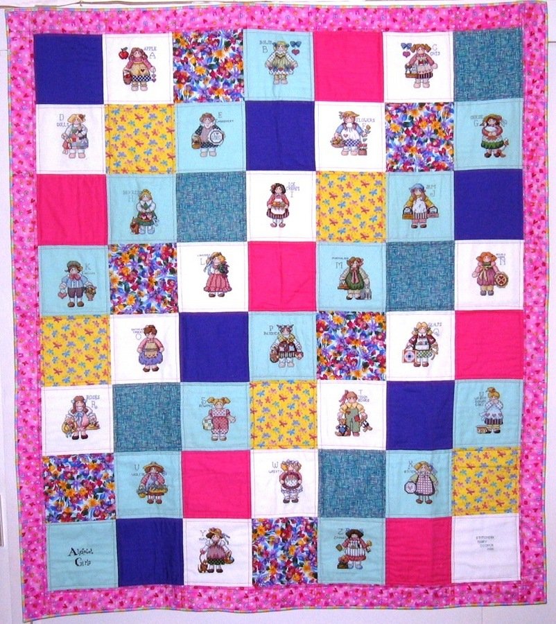 sewmary ABC Girls - I started cross stitching each ABC girl in 2001 & quilted all blocks together in 2006.