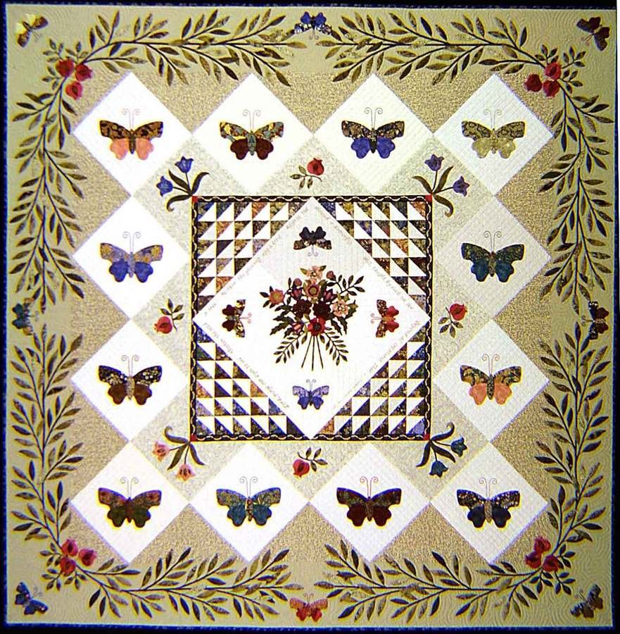 | Design Source - Description | I love William Morris designs and reproductions. The butterflys are all make with different Wm. Morris fabrics. The background fabric is his willows pattern and I designed the border from that fabric. |