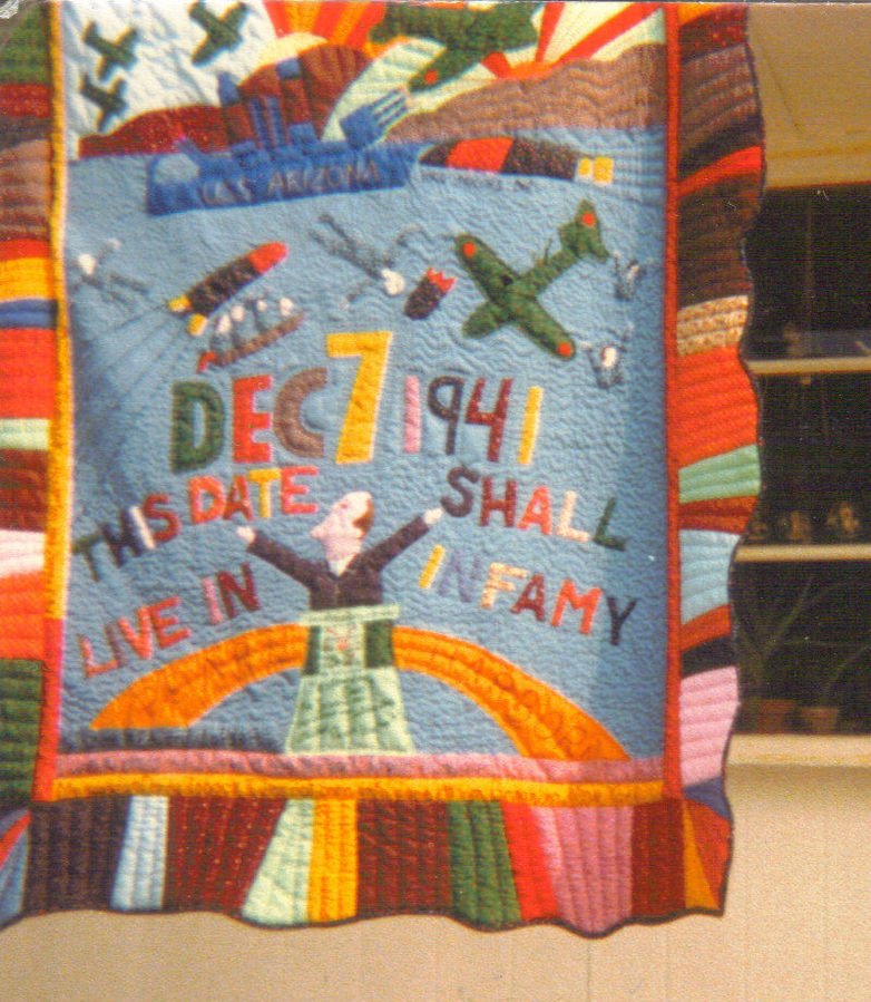 tobylehnj Pearl Harbor - Designed by Ed Larson, hand appliqued and hand quilted by Donna Toback, in NJ. This quilt was sold in a CA. gallery back in '82 and just appeared in a story about Ed Larson, in Quilter's Newsletter, 2008, June issue. I am so exceited to see it there, I wanted to tell the world. I don't know who owns it now or where it is now.