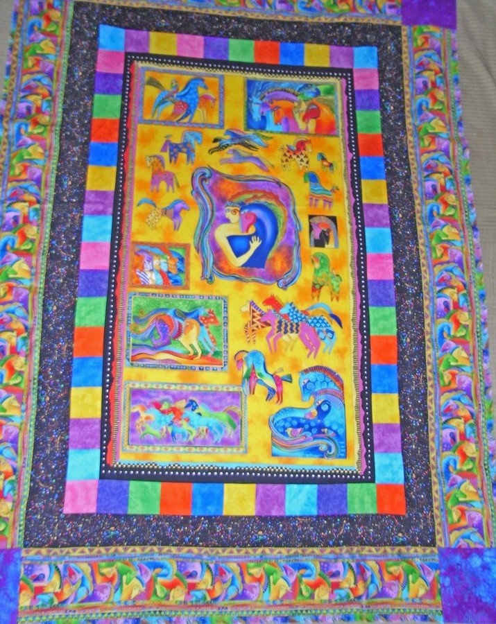 | Design Source - Description | I love Laurel Burch fabrics. I bought the mythical horse fabric for my nephew's daughter who loves horses. It's still just a quilt top but will be finished this summer. |