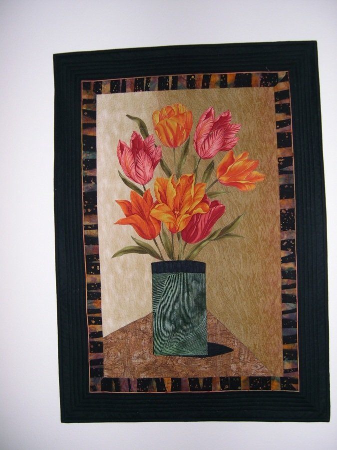 ambven Tulips - I saw the tulip fabric and had to use it. It is fusible raw edge applique. The original was hanging in The Quilting Bug in Massapequa, NY.