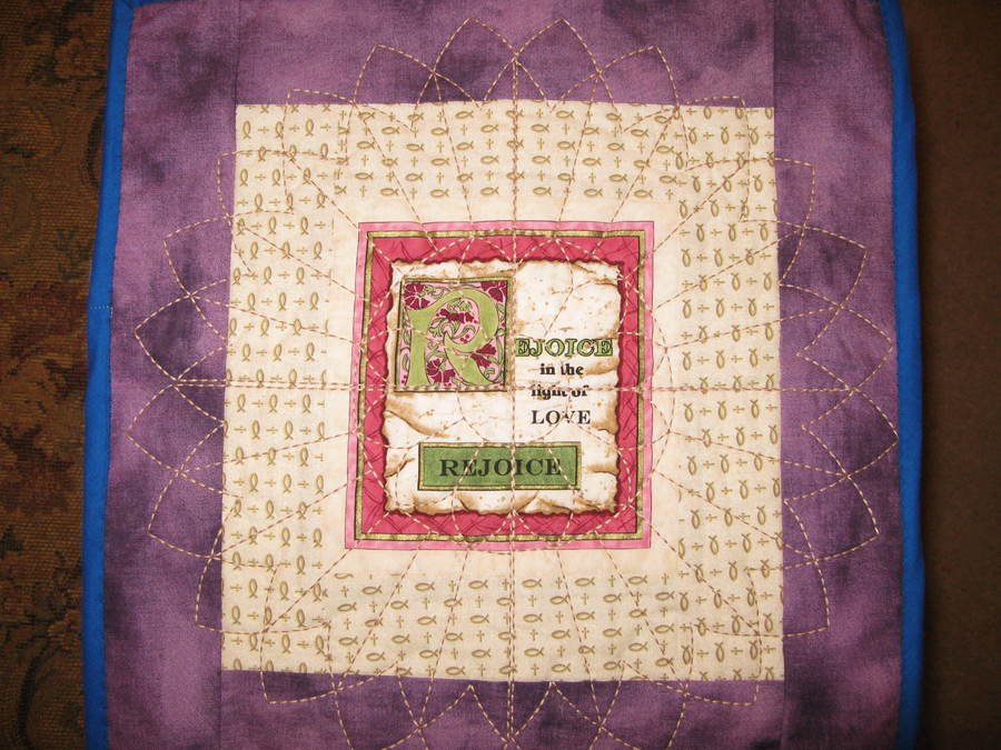 | Design Source - Description | This is a small preprinted block wall hanging, quilted in quarters on my Brother PR620 Embroidery machine. It was given to my Sunday School class. |