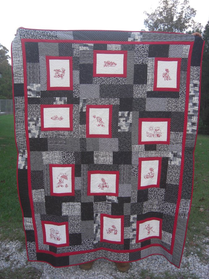 | Design Source - Description | I used the turning 20 pattern and embroidery designs by Juju. I digitized and edited some of the designs. I made this quilt for my brother for his 51st birthday. |